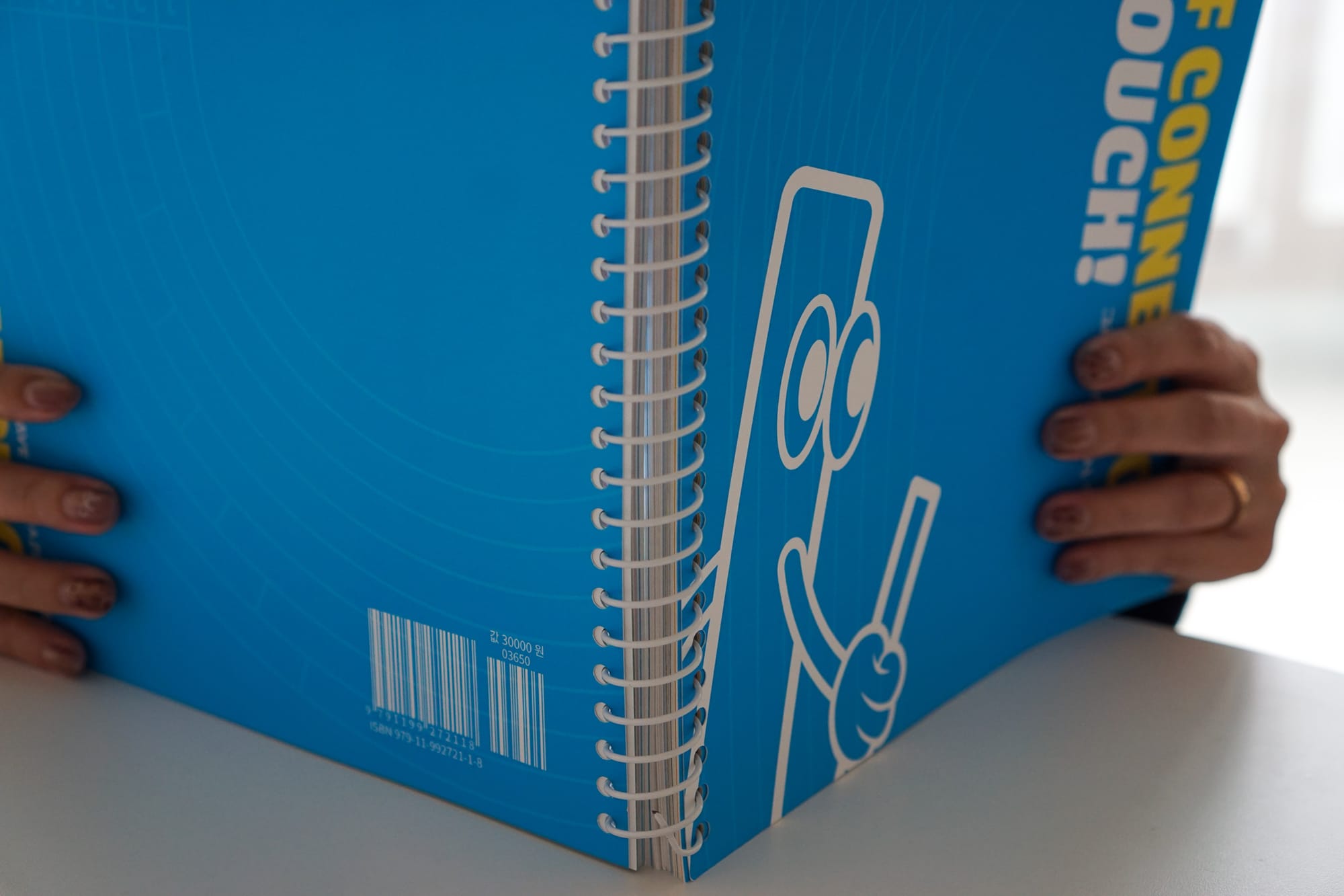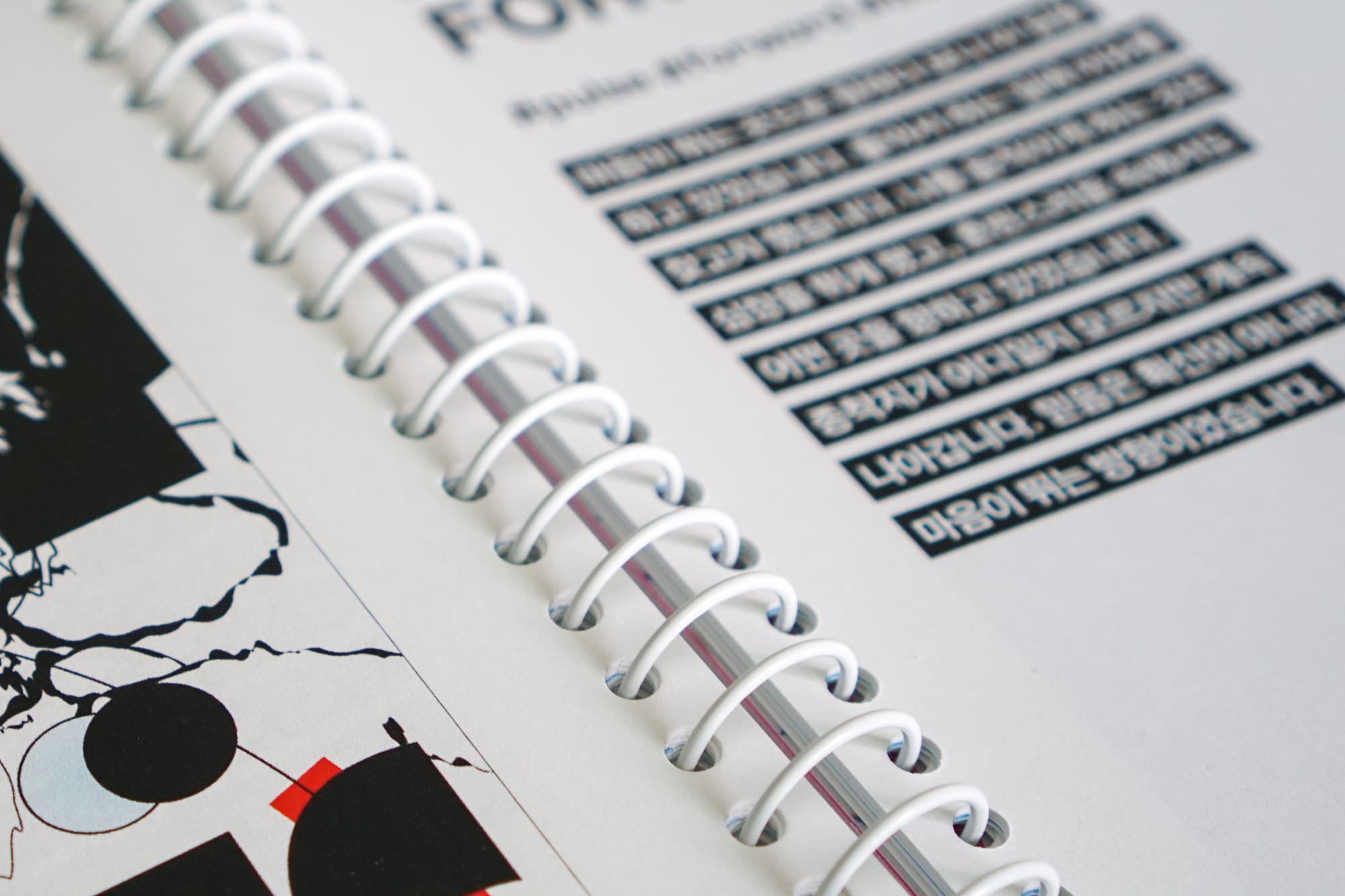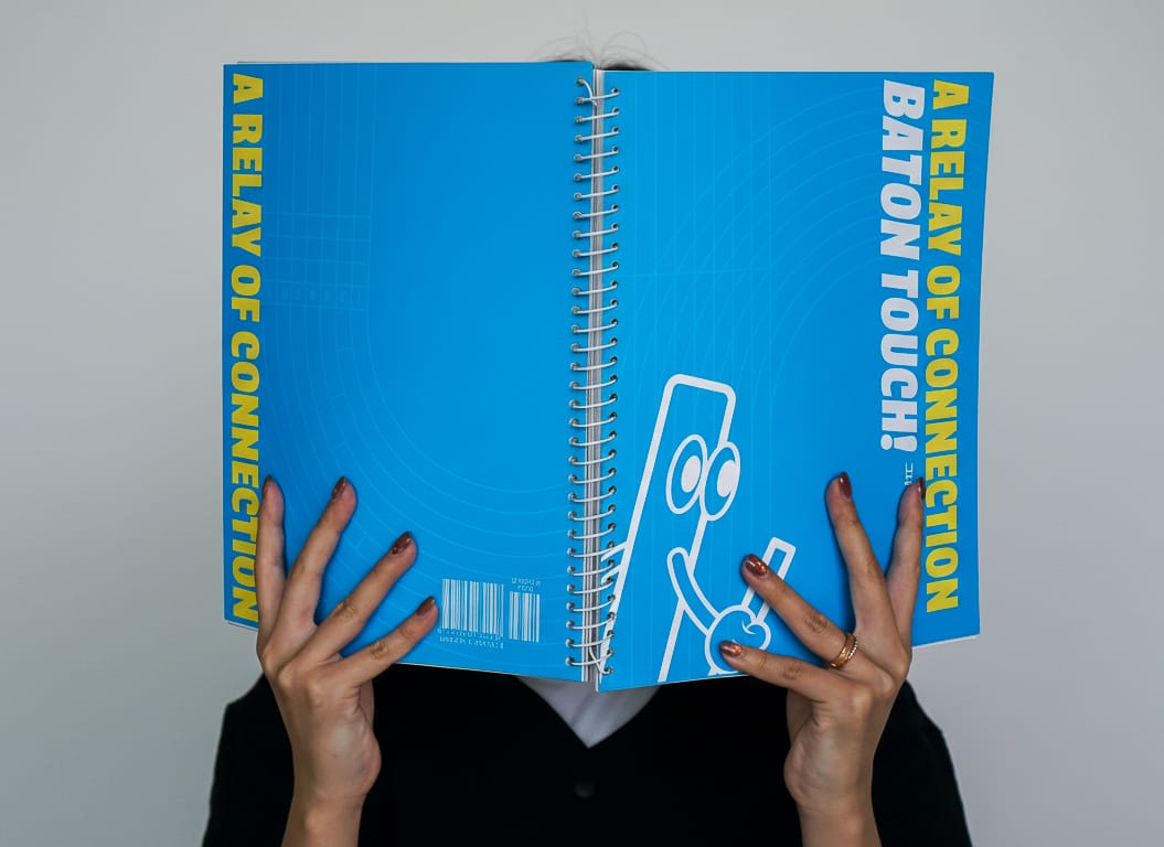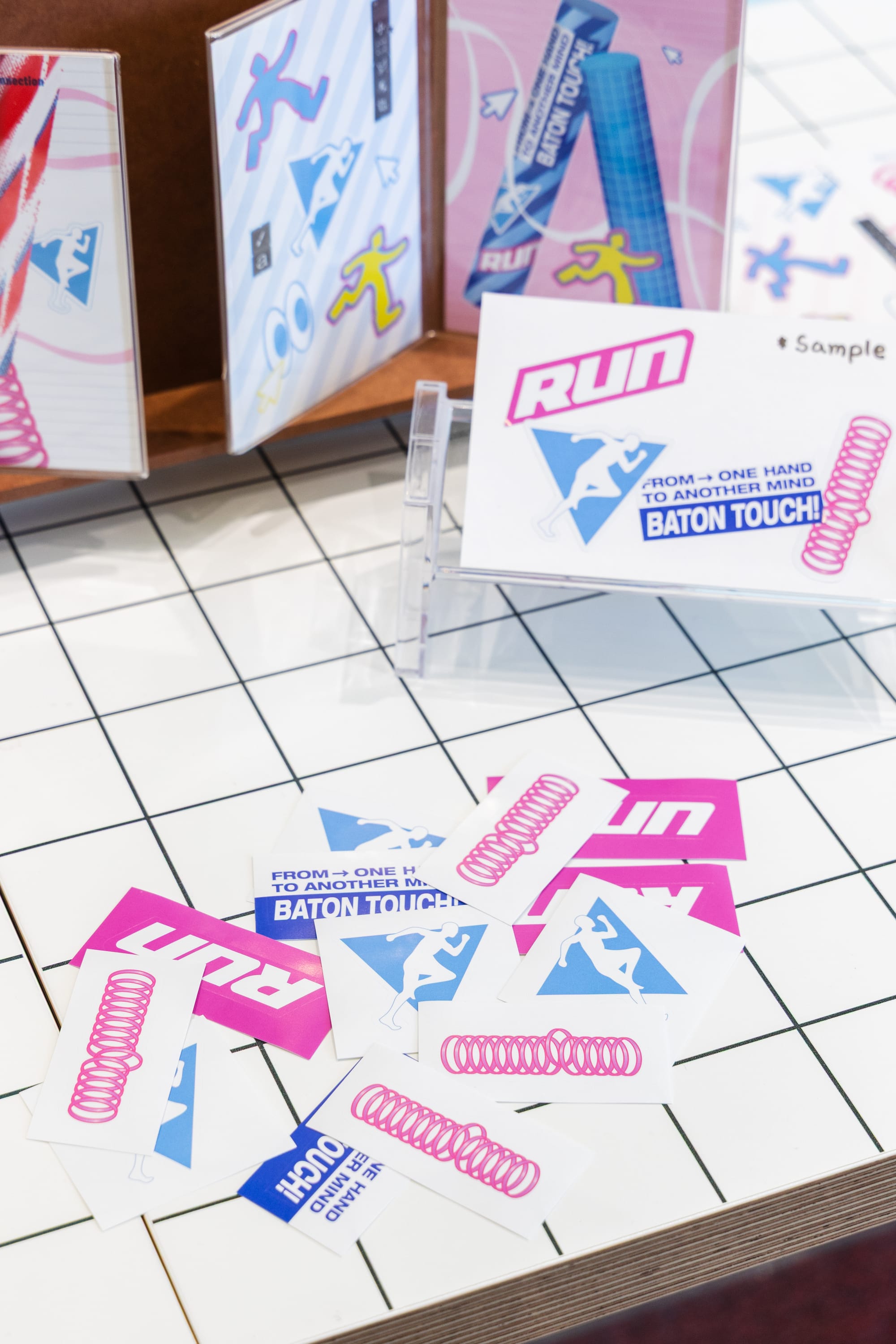《바통터치!》 도록은 전시의 시작부터 완주까지의 전체 여정을 한 권에 담았습니다. 전시 서문, 기획 과정, 공간 도면, 전경, 그리고 48인의 디자이너가 만들어낸 그래픽 포스터와 설문, 방명록, 후일담까지. 전시의 모든 순간이 이 책 안에서 이어집니다.