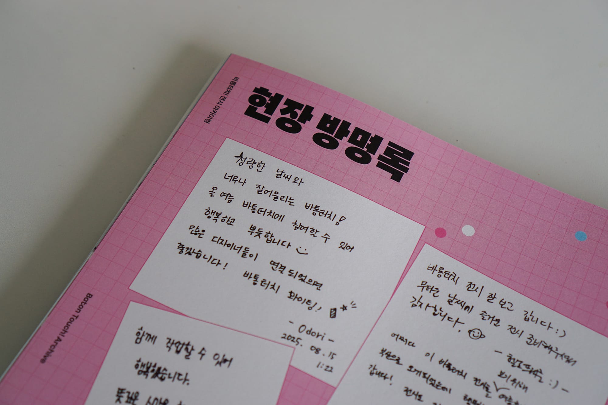 한 줄의 방명록, 서로의 대화, 그리고 그 여운까지 —《바통터치!》는 그 이후의 시간을 책 속에 담았습니다.
