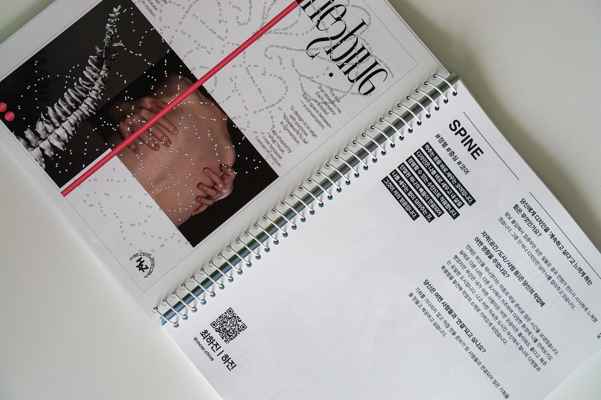 디자인을 계속하게 만드는 믿음의 연결을 기록. 스프링제본, 인디고인쇄, 2025년 9월 발간.